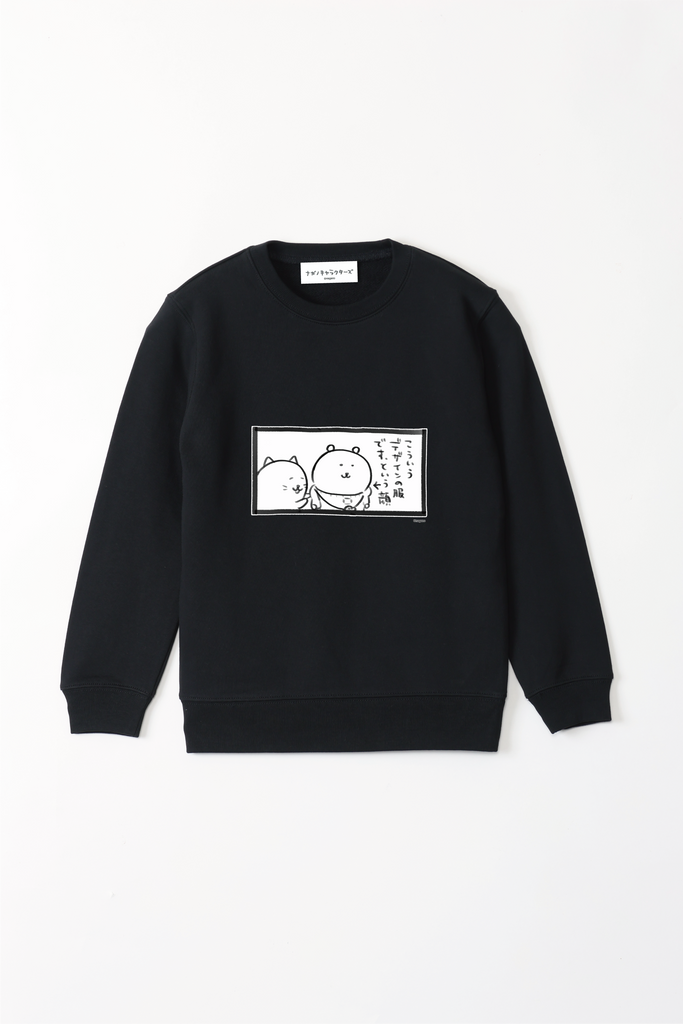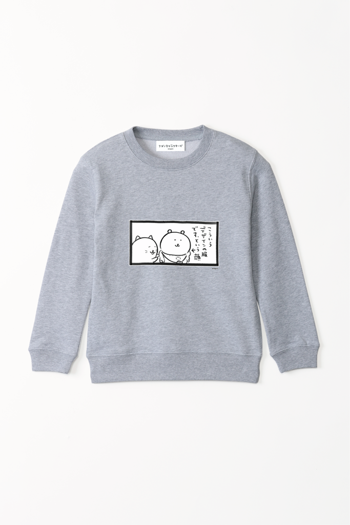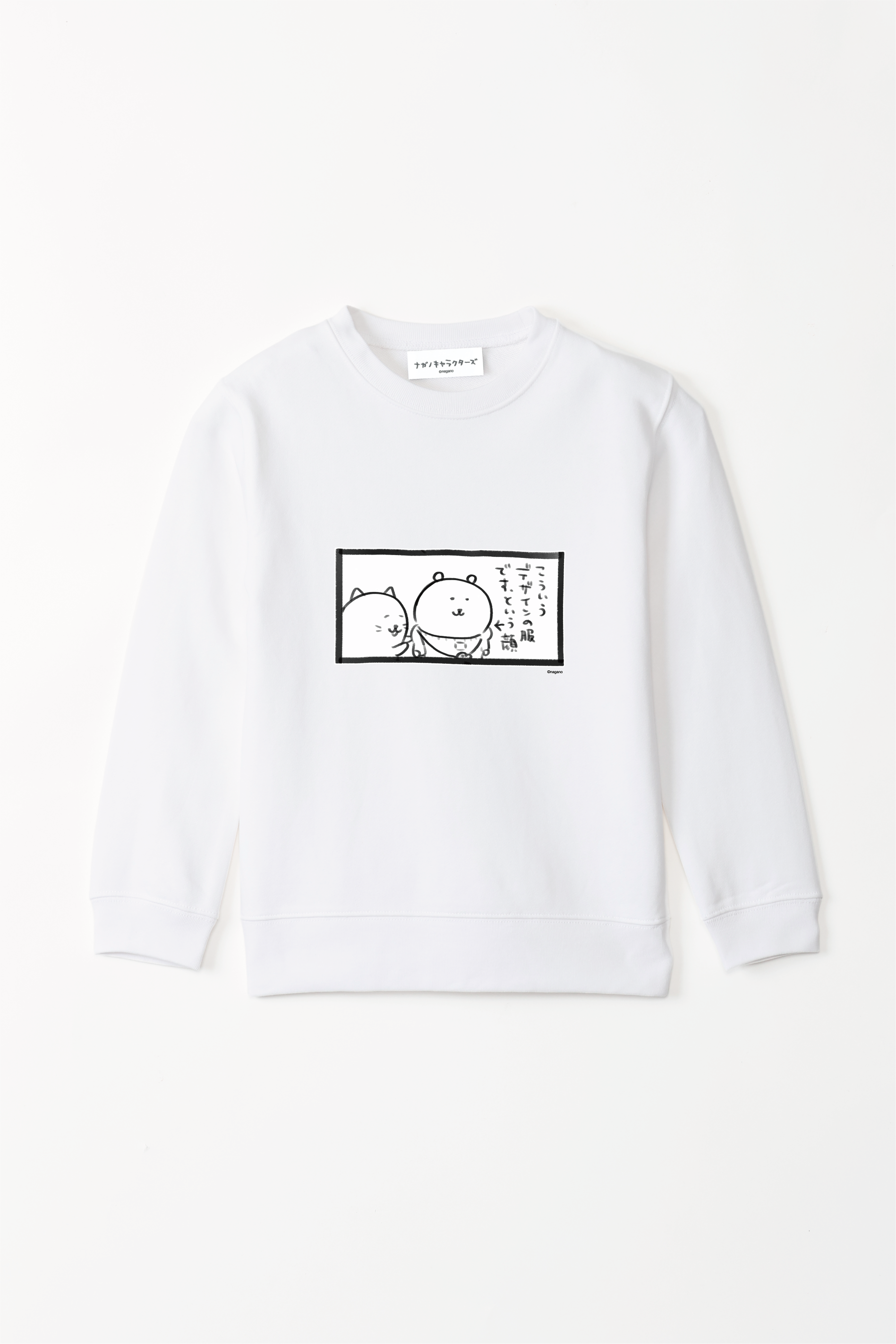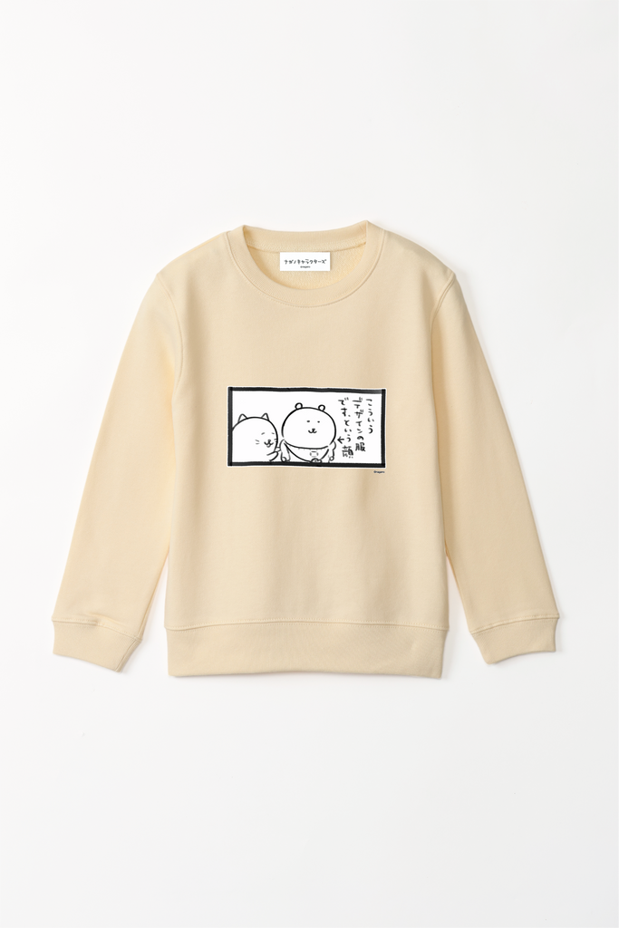 ナガノキャラクターズ こういうデザインの服ですという顔 キッズスウェット