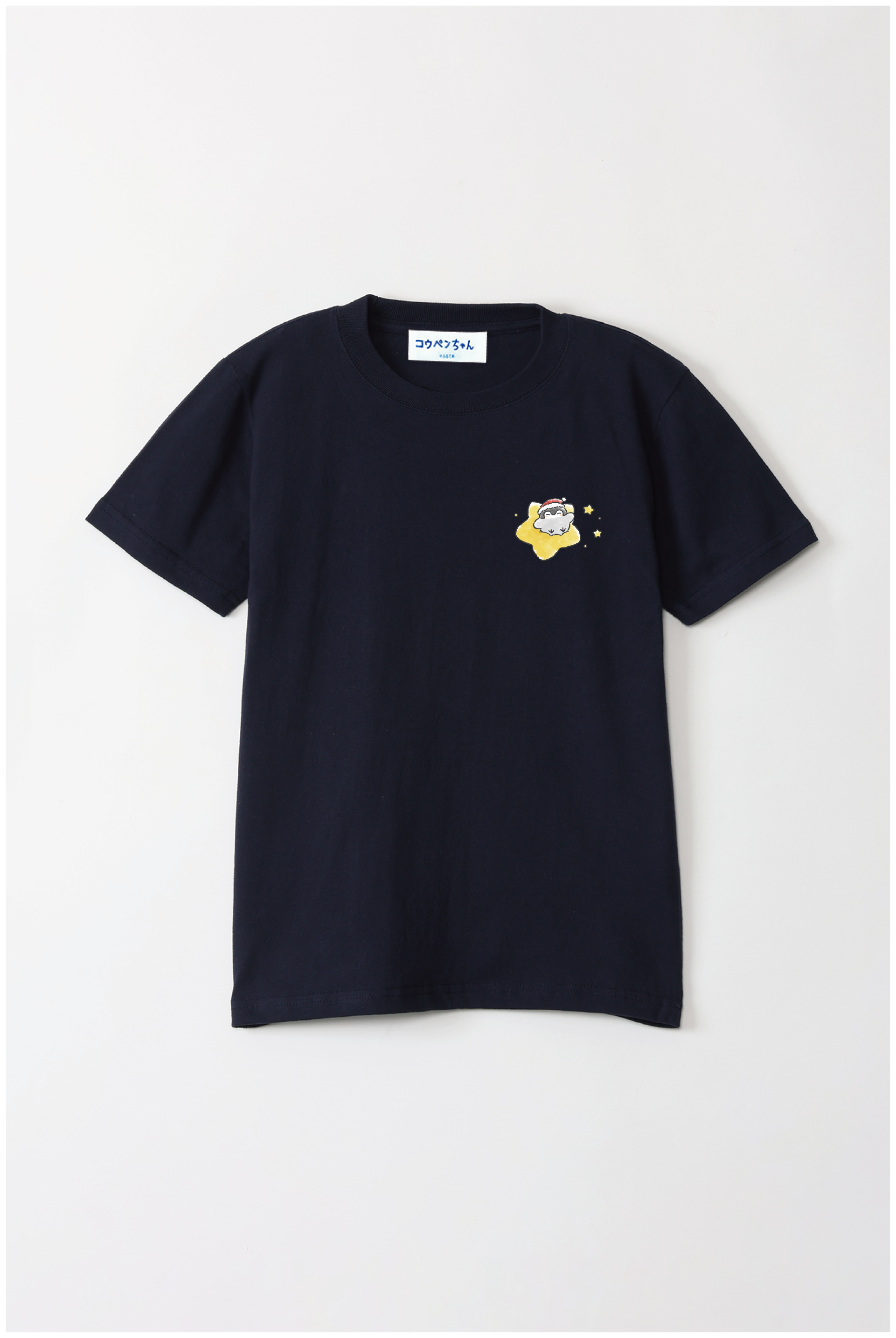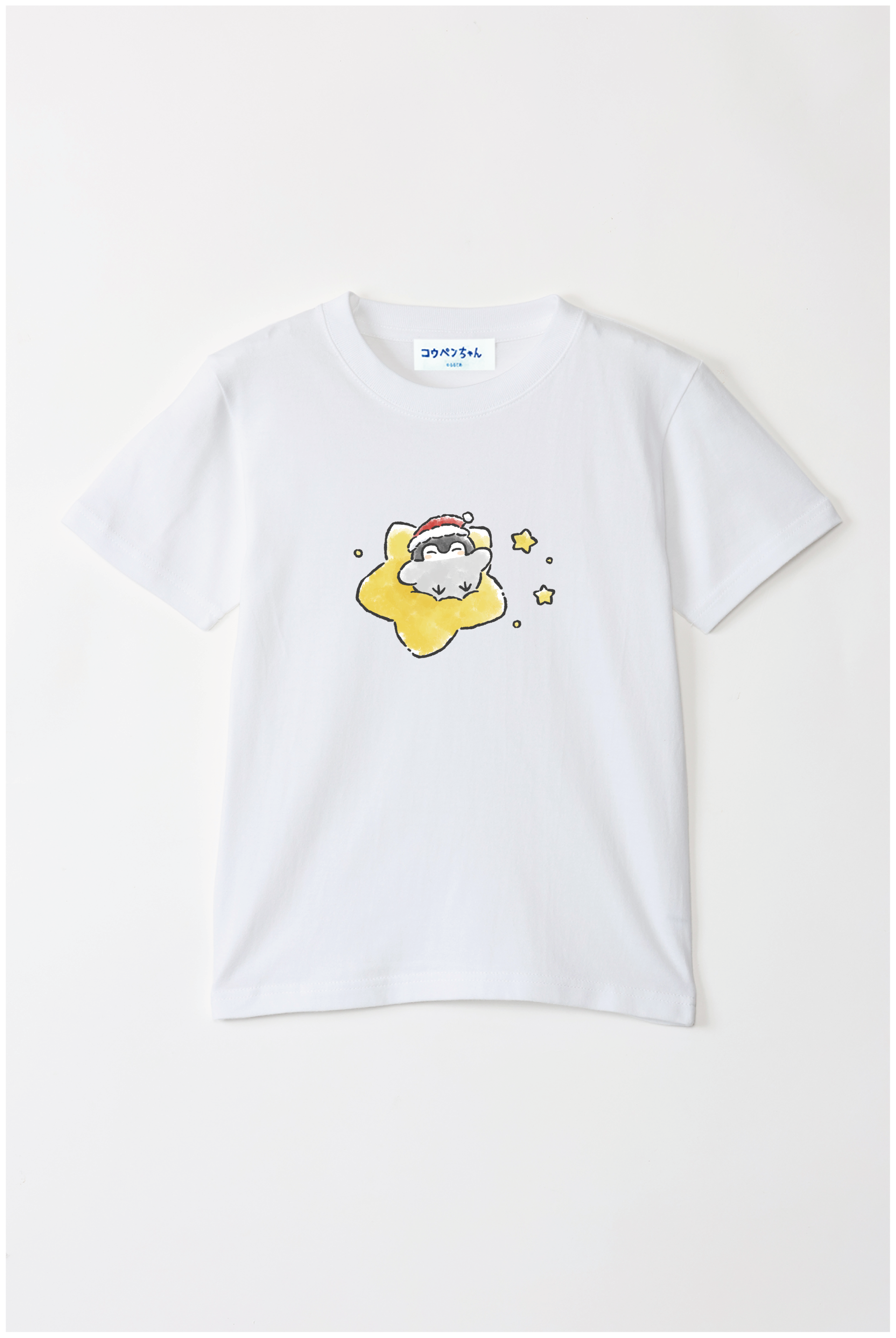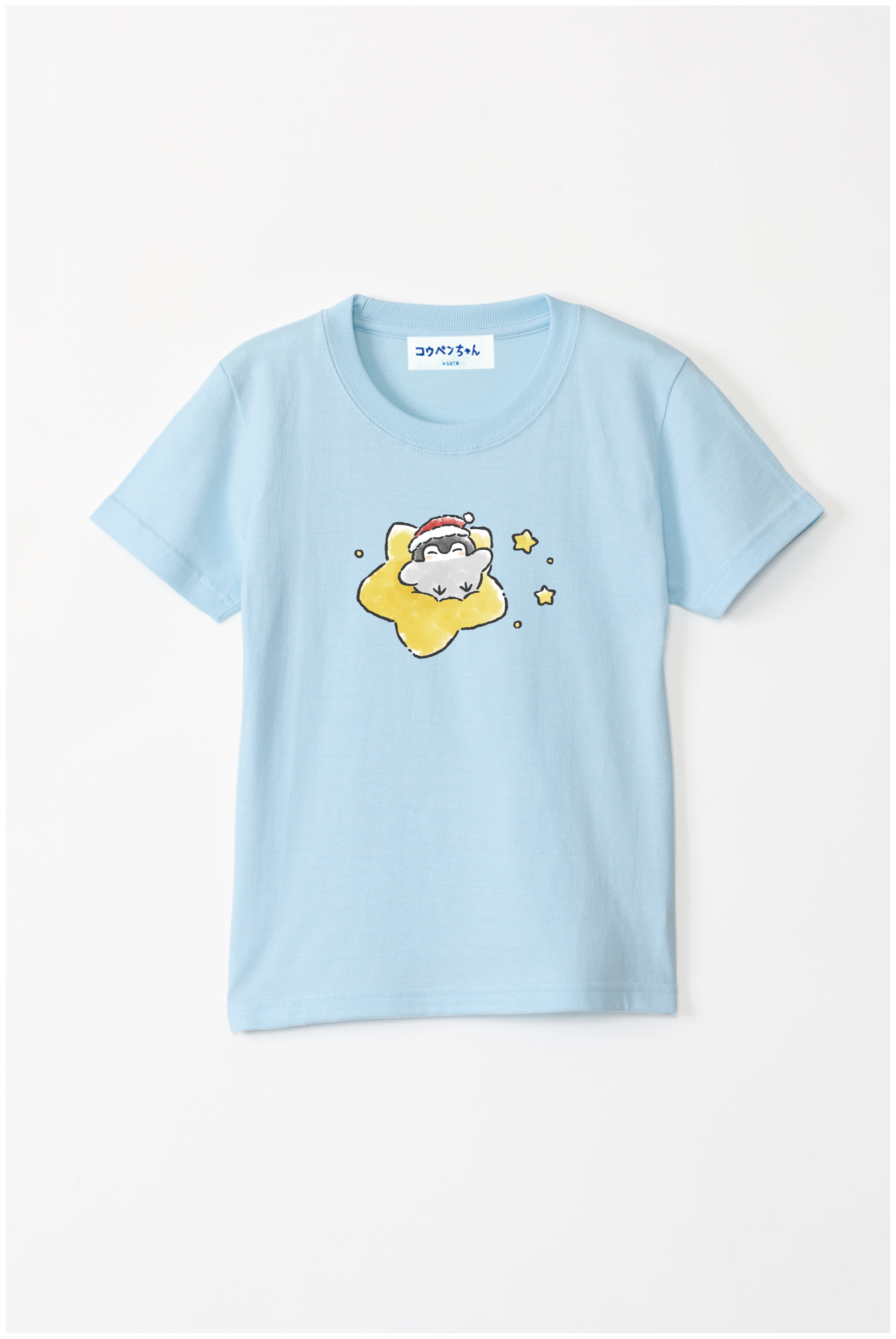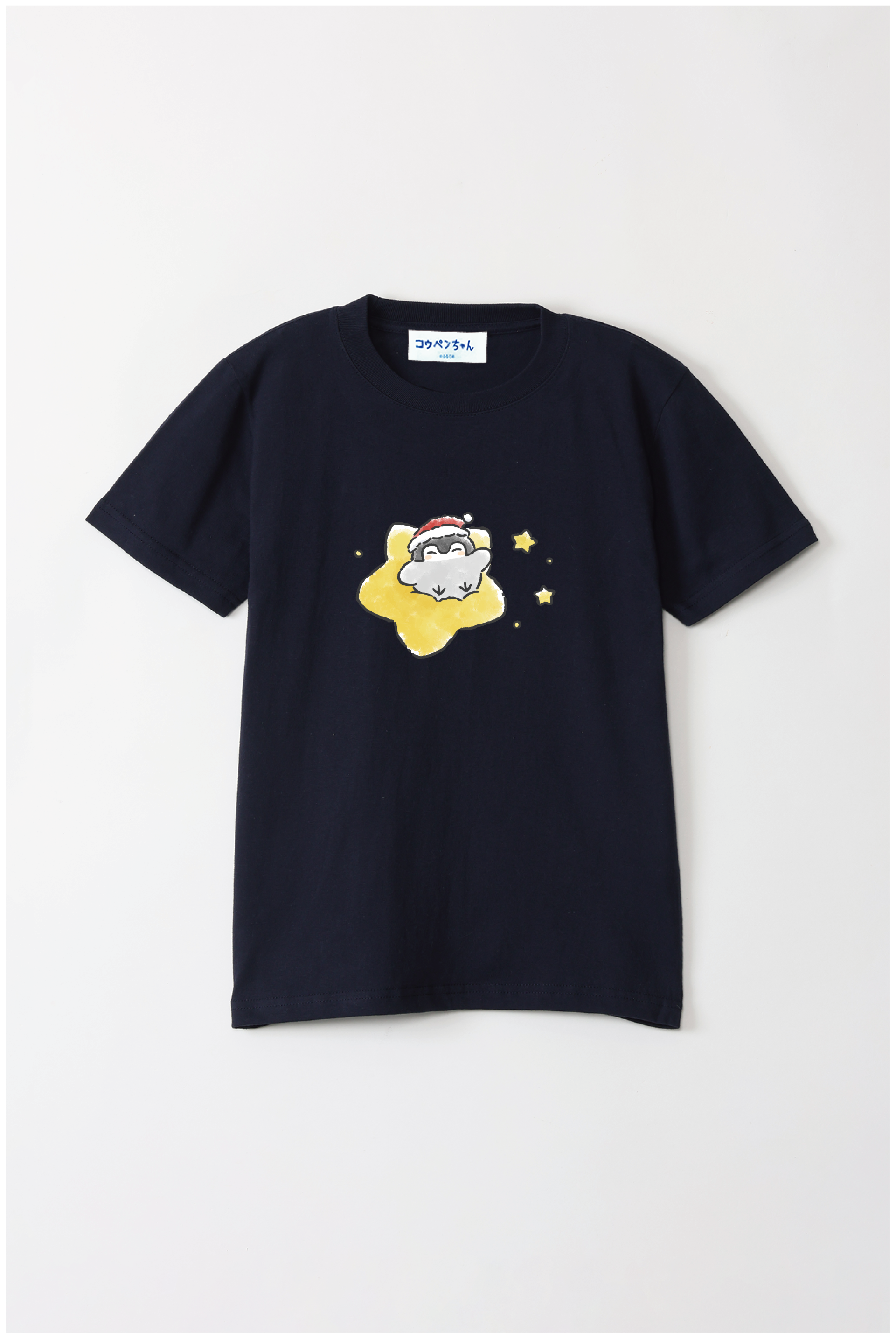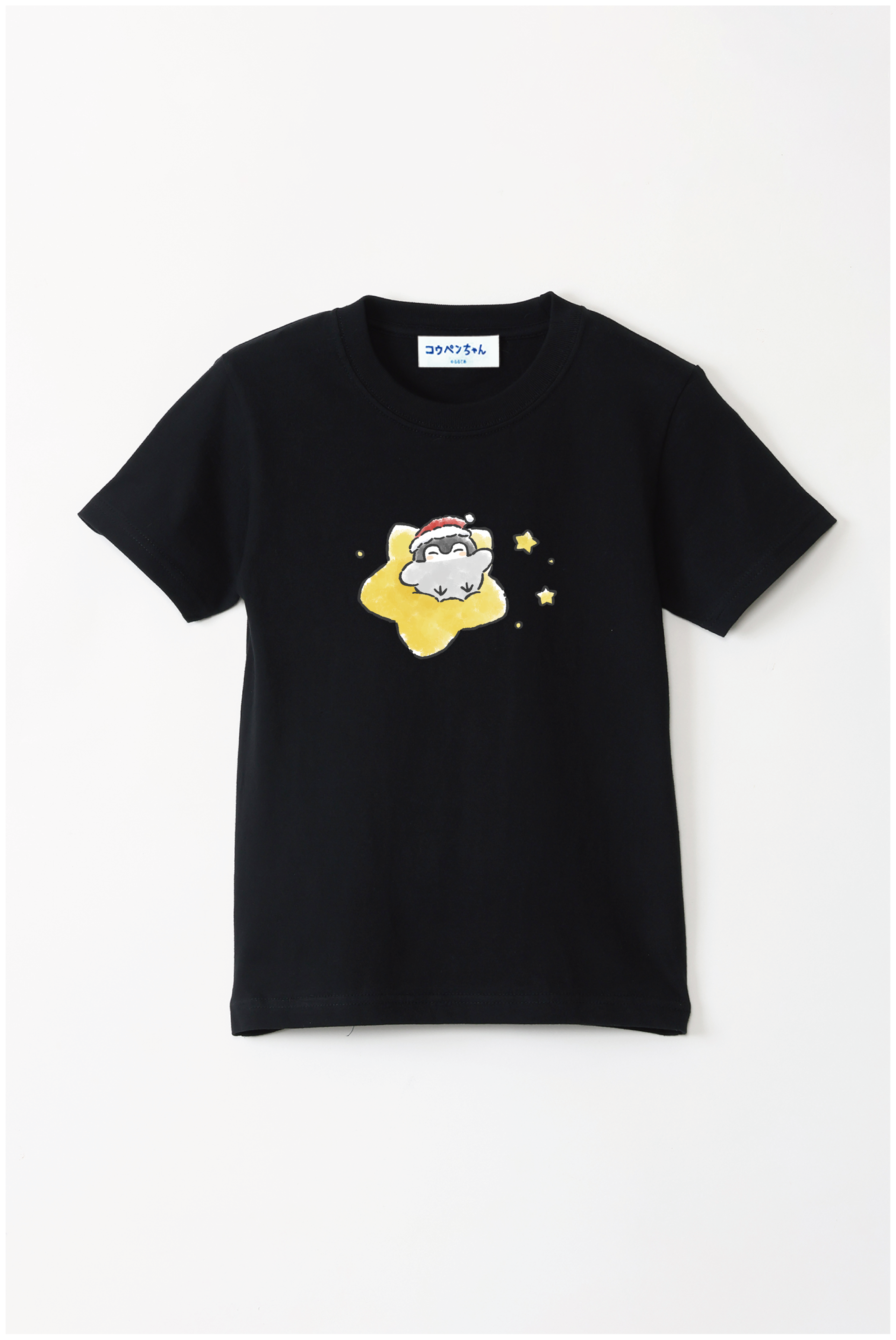 サンタさんの帽子をかぶったコウペンちゃんが、星に乗って輝く冬のデザイン♪