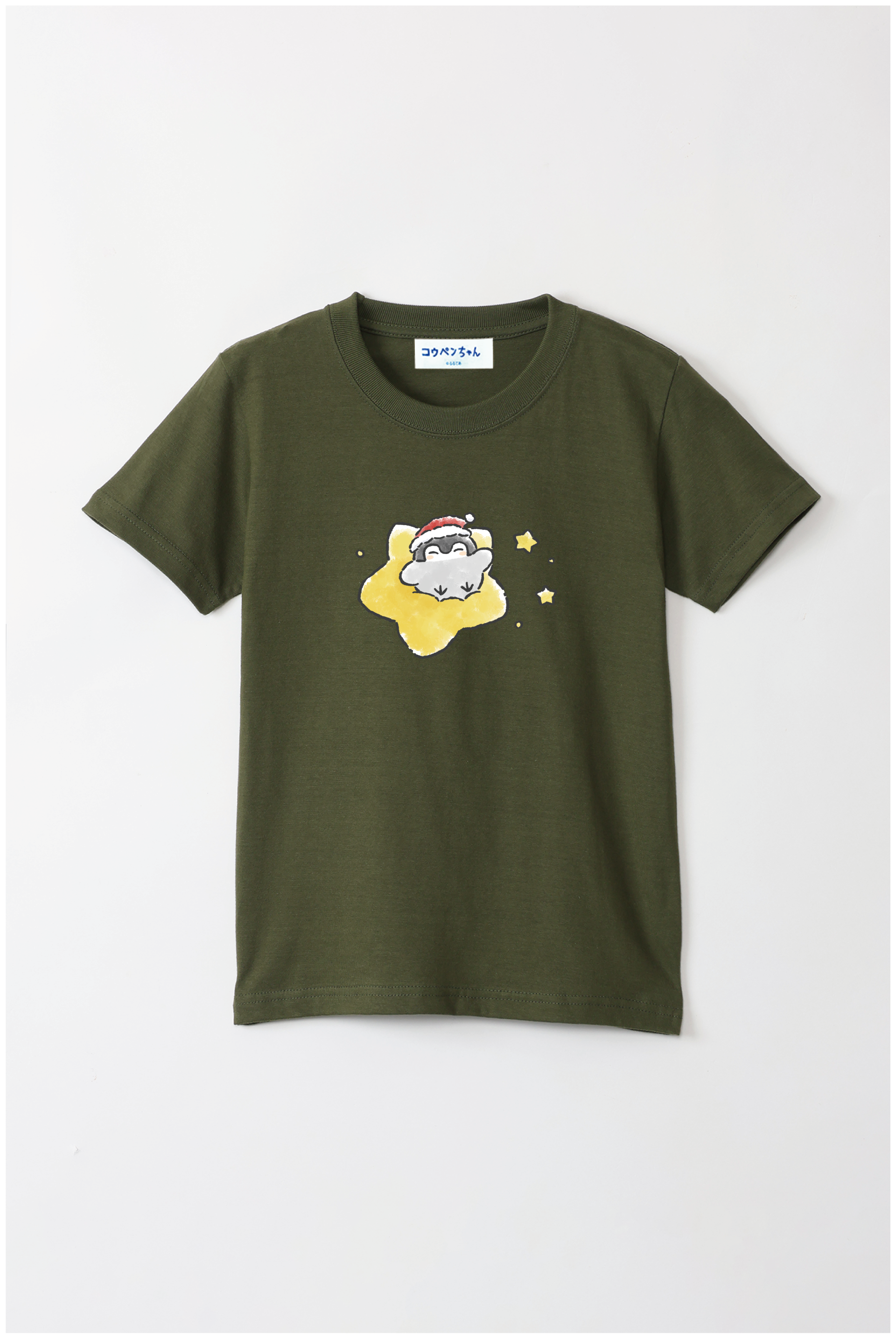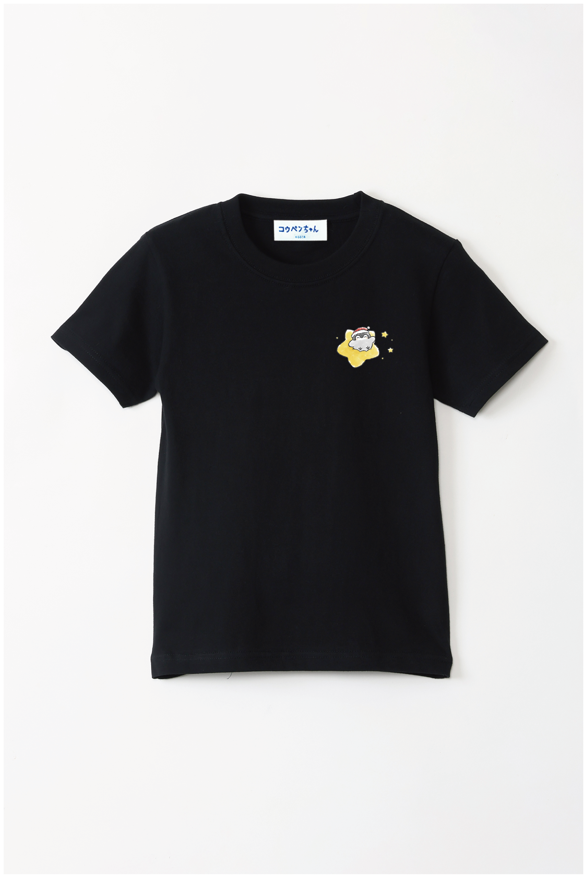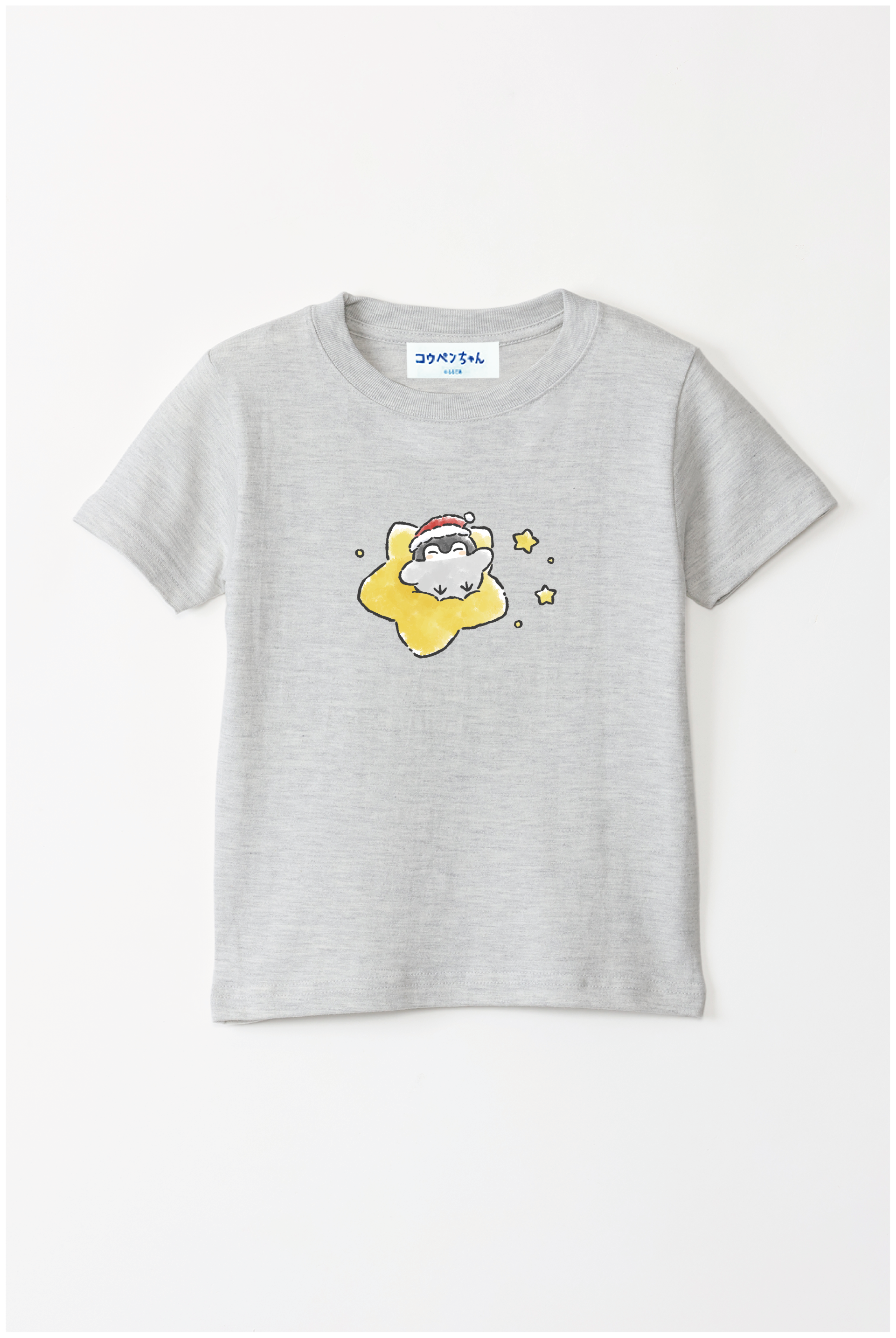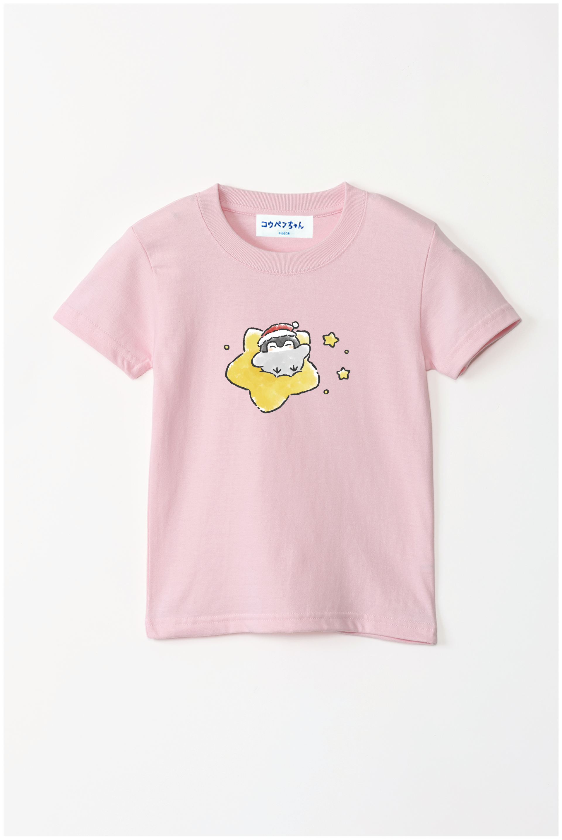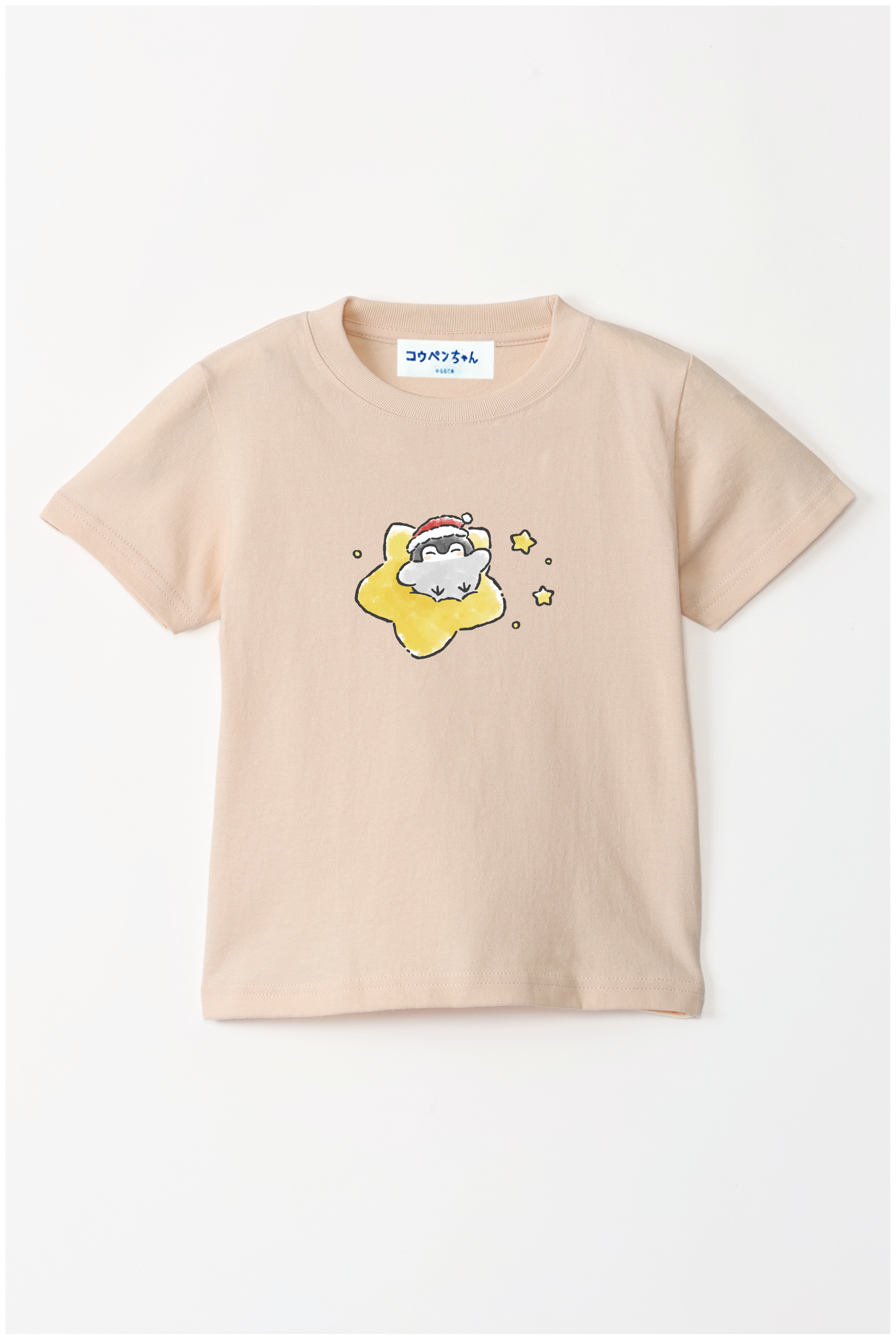 サンタさんの帽子をかぶったコウペンちゃんが、星に乗って輝く冬のデザイン♪
