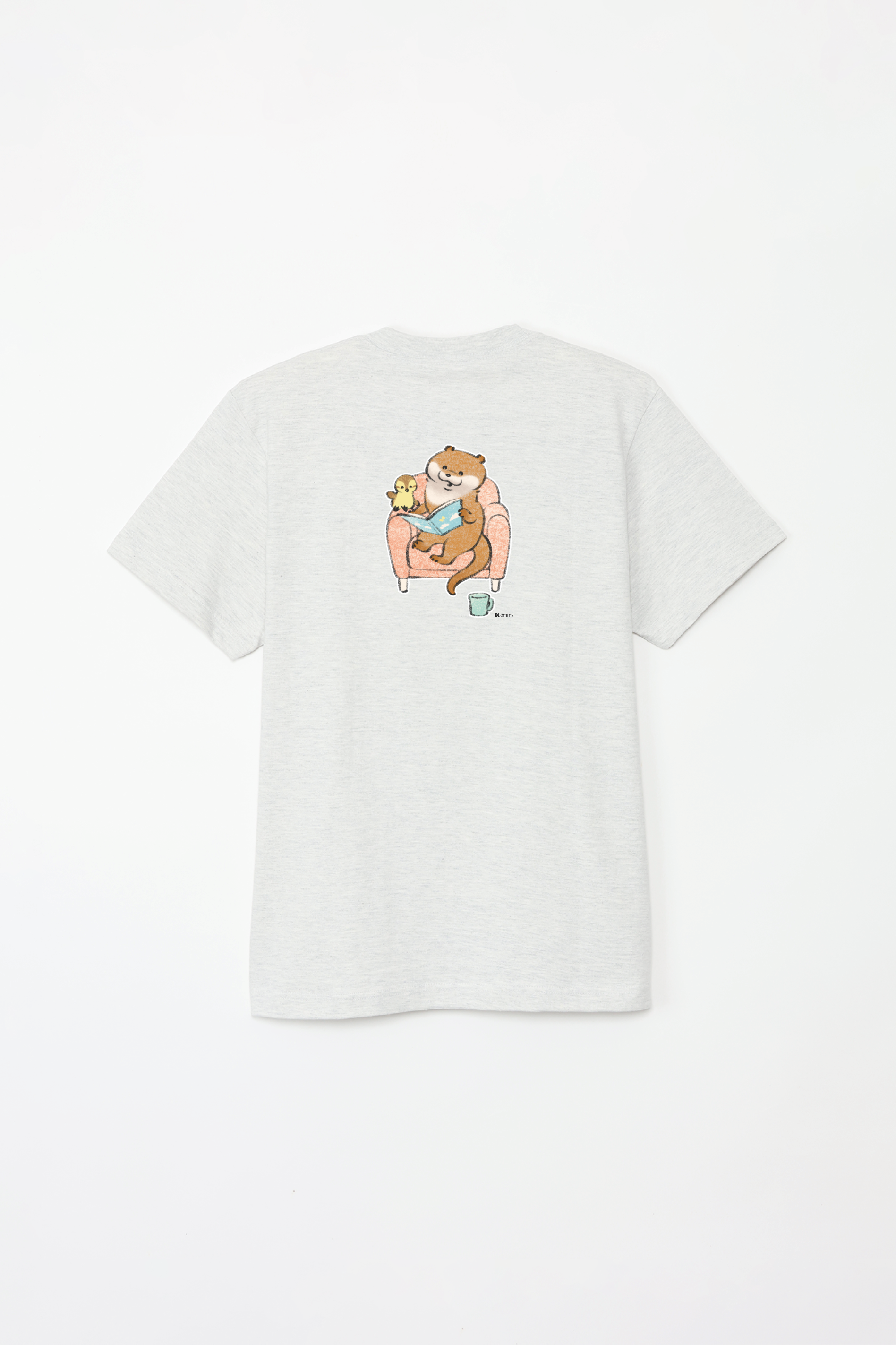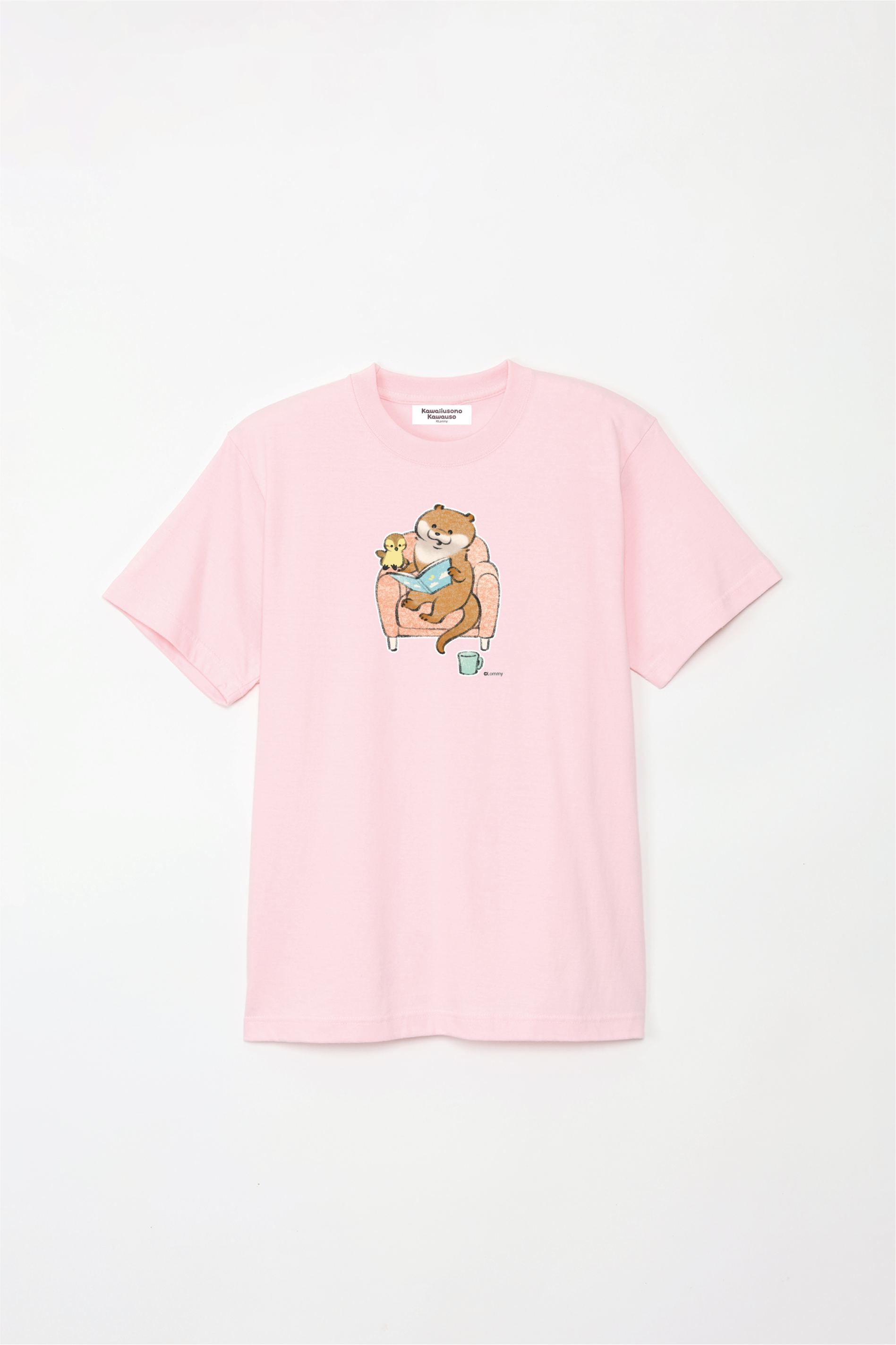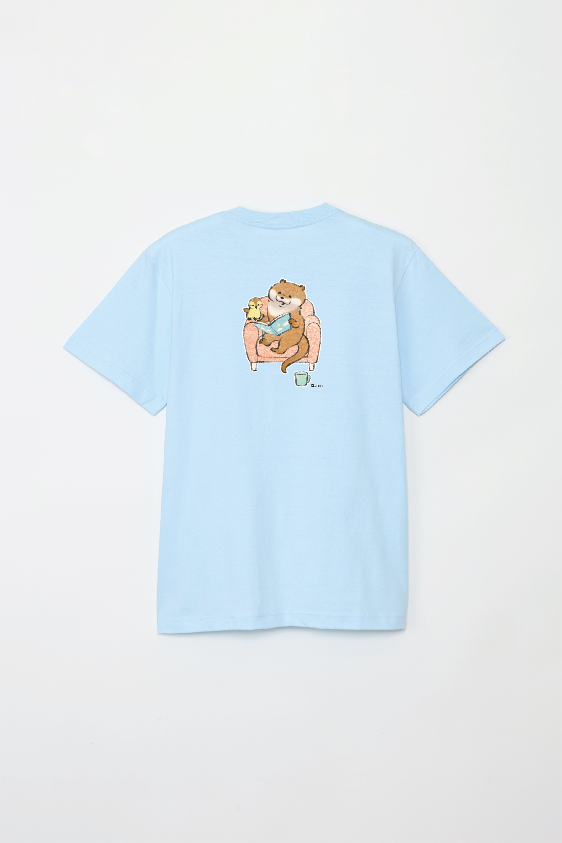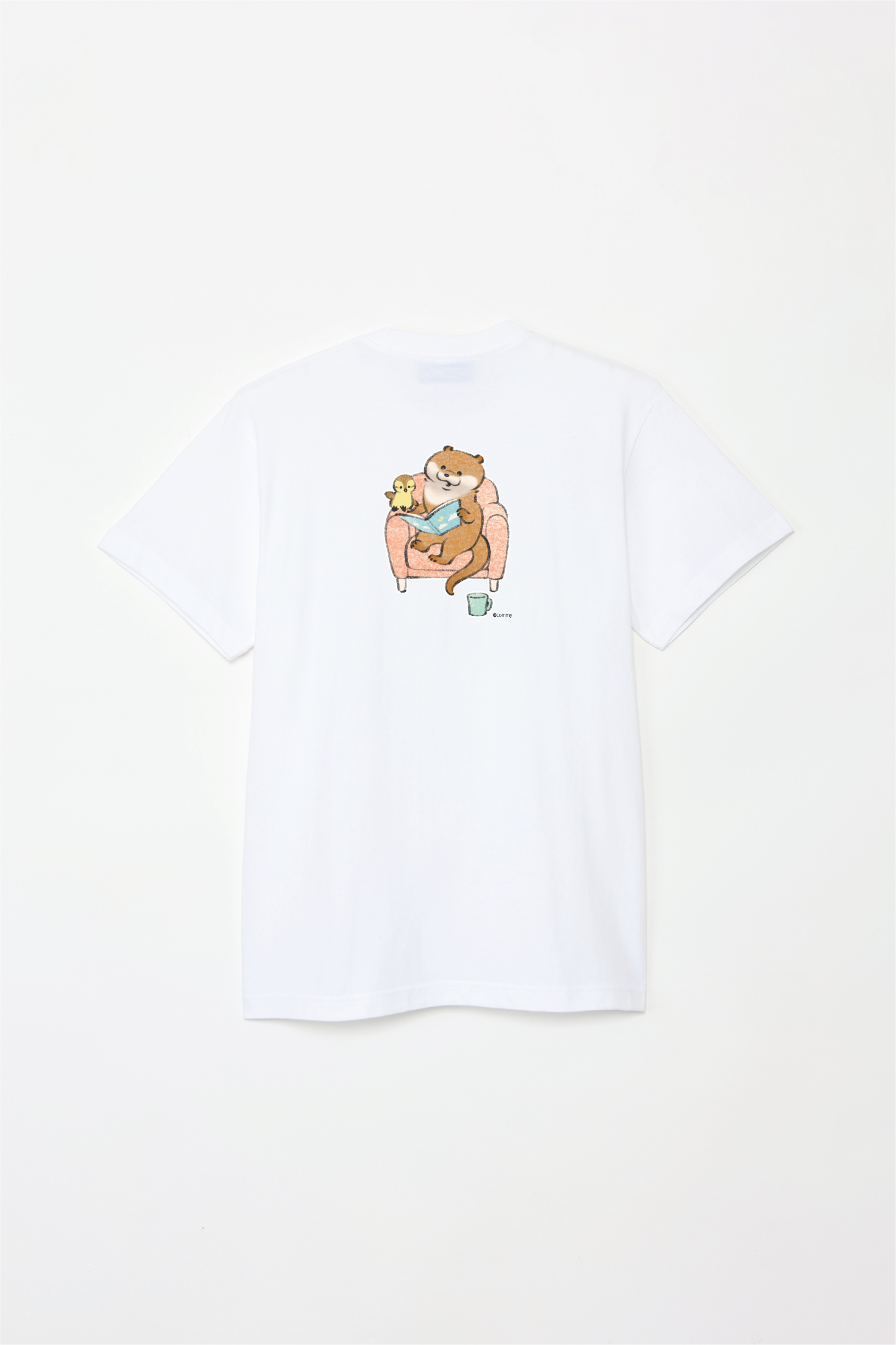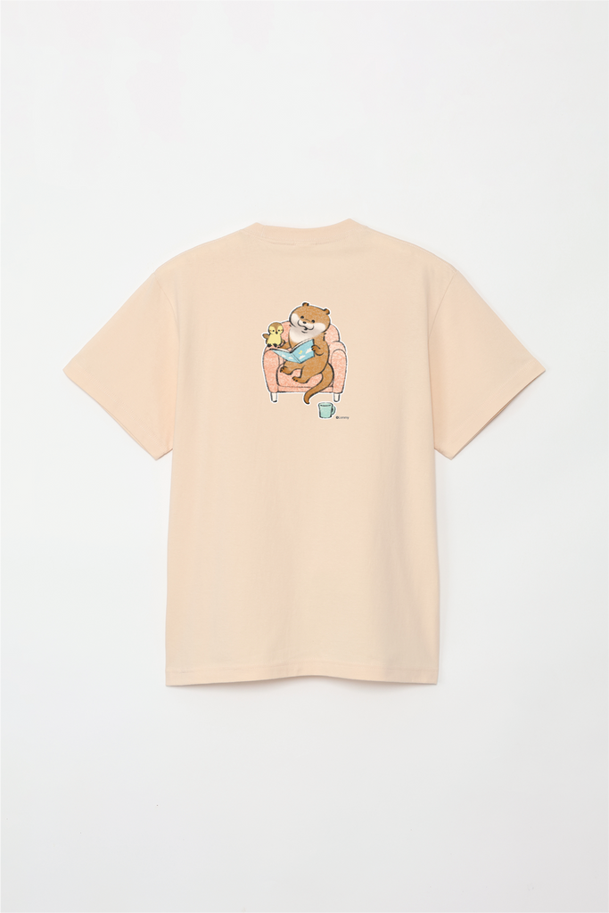 ソファで本を読むカワウソとカモちゃんの可愛いデザイン