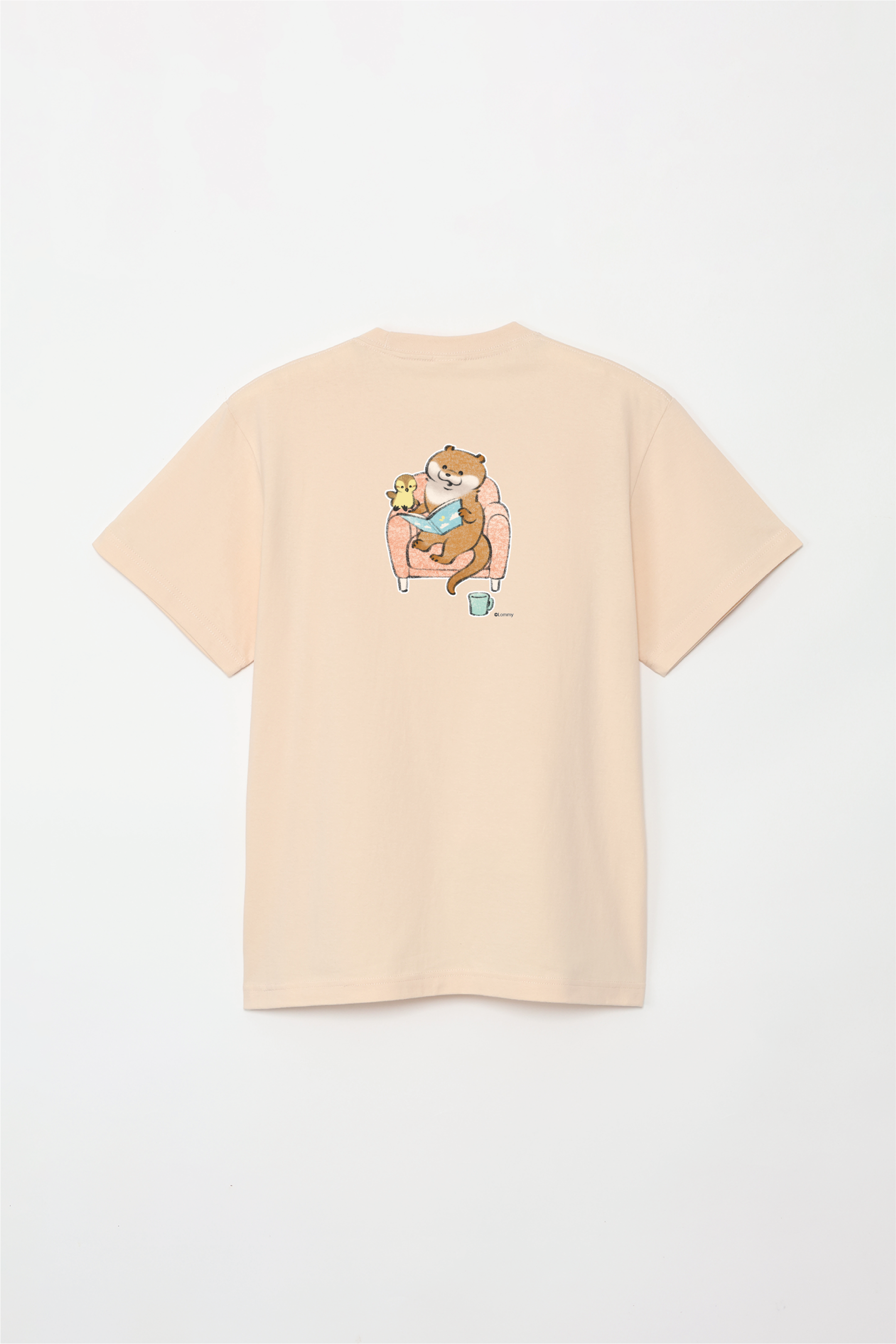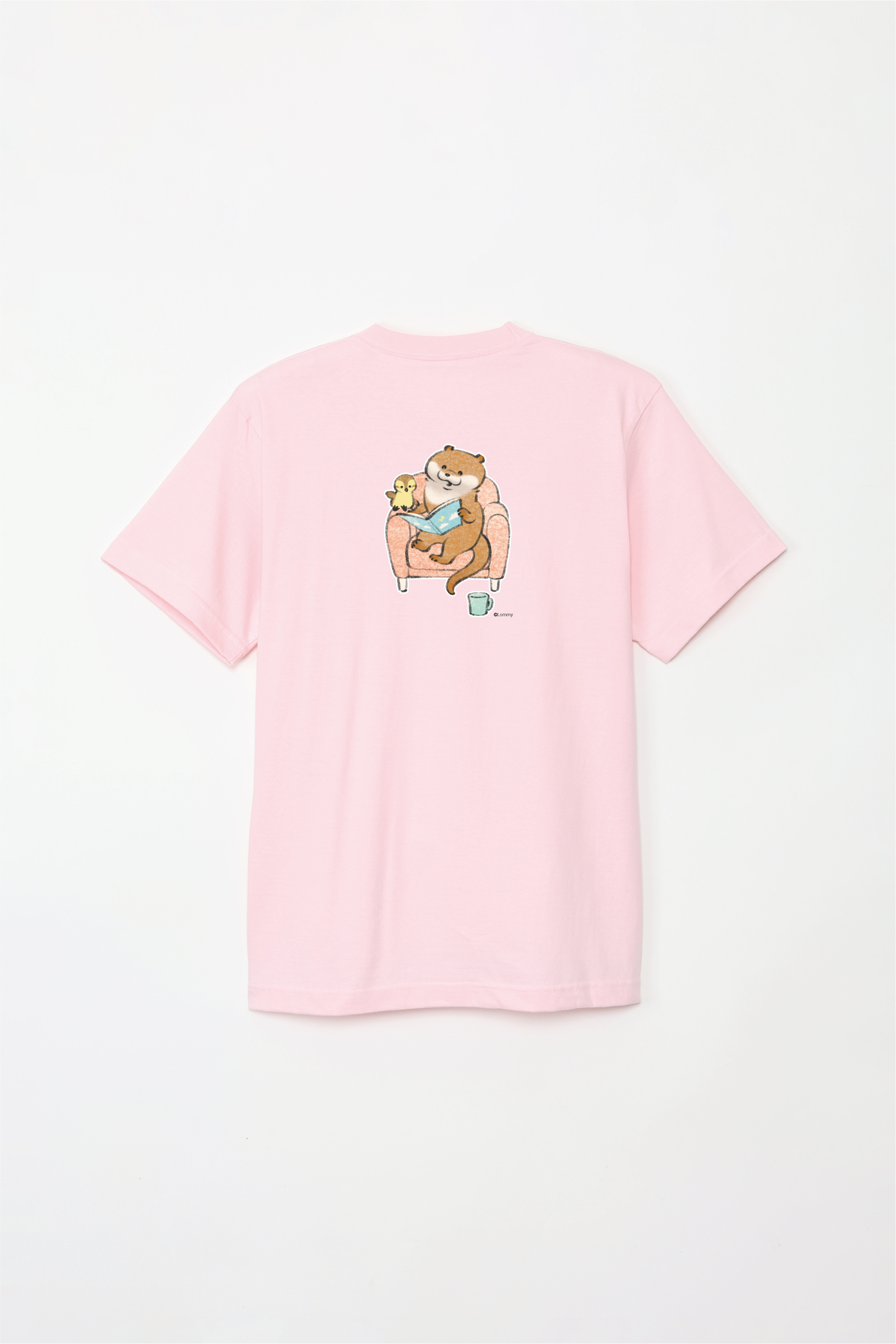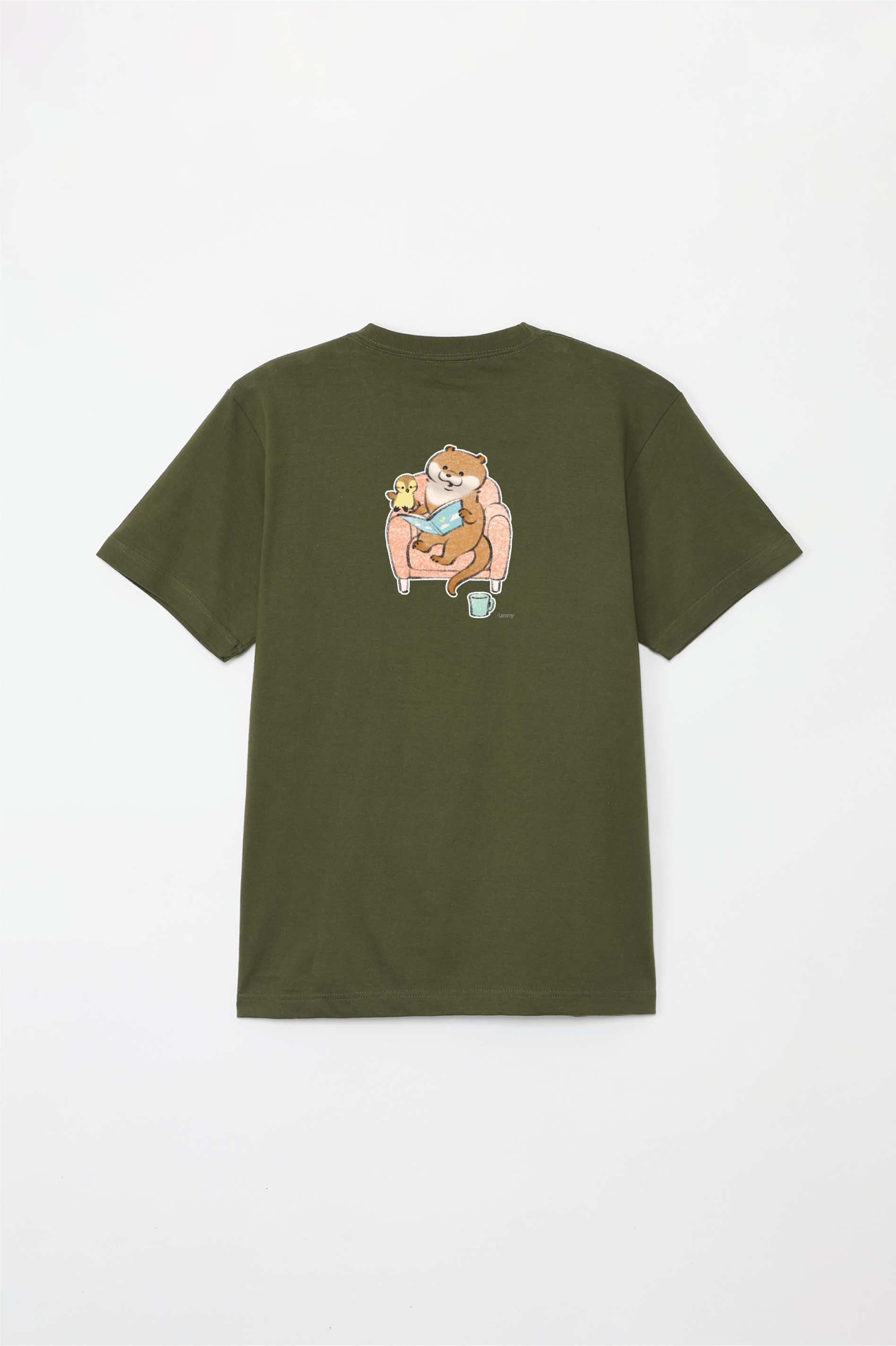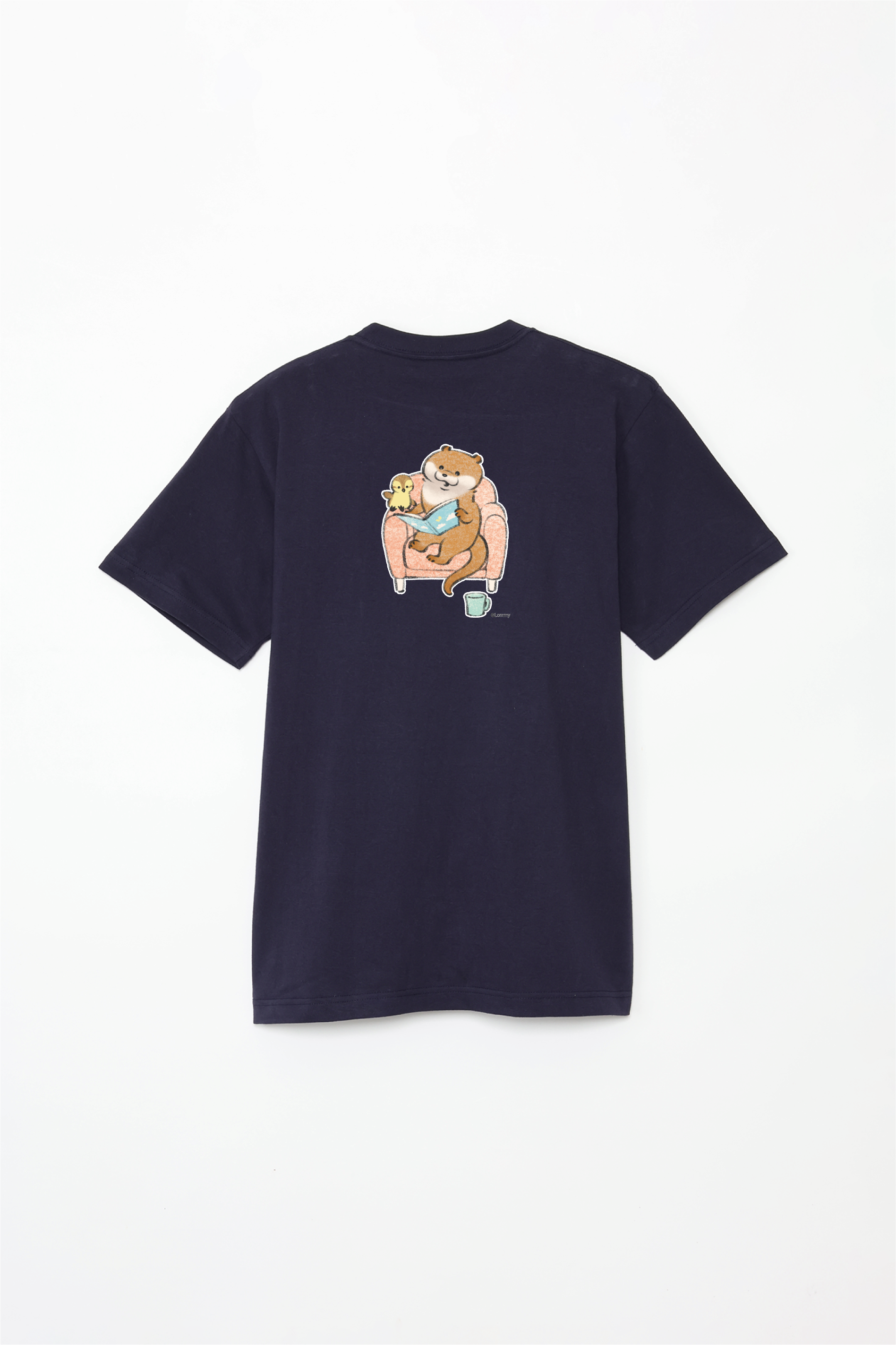 ソファで本を読むカワウソとカモちゃんの可愛いデザイン