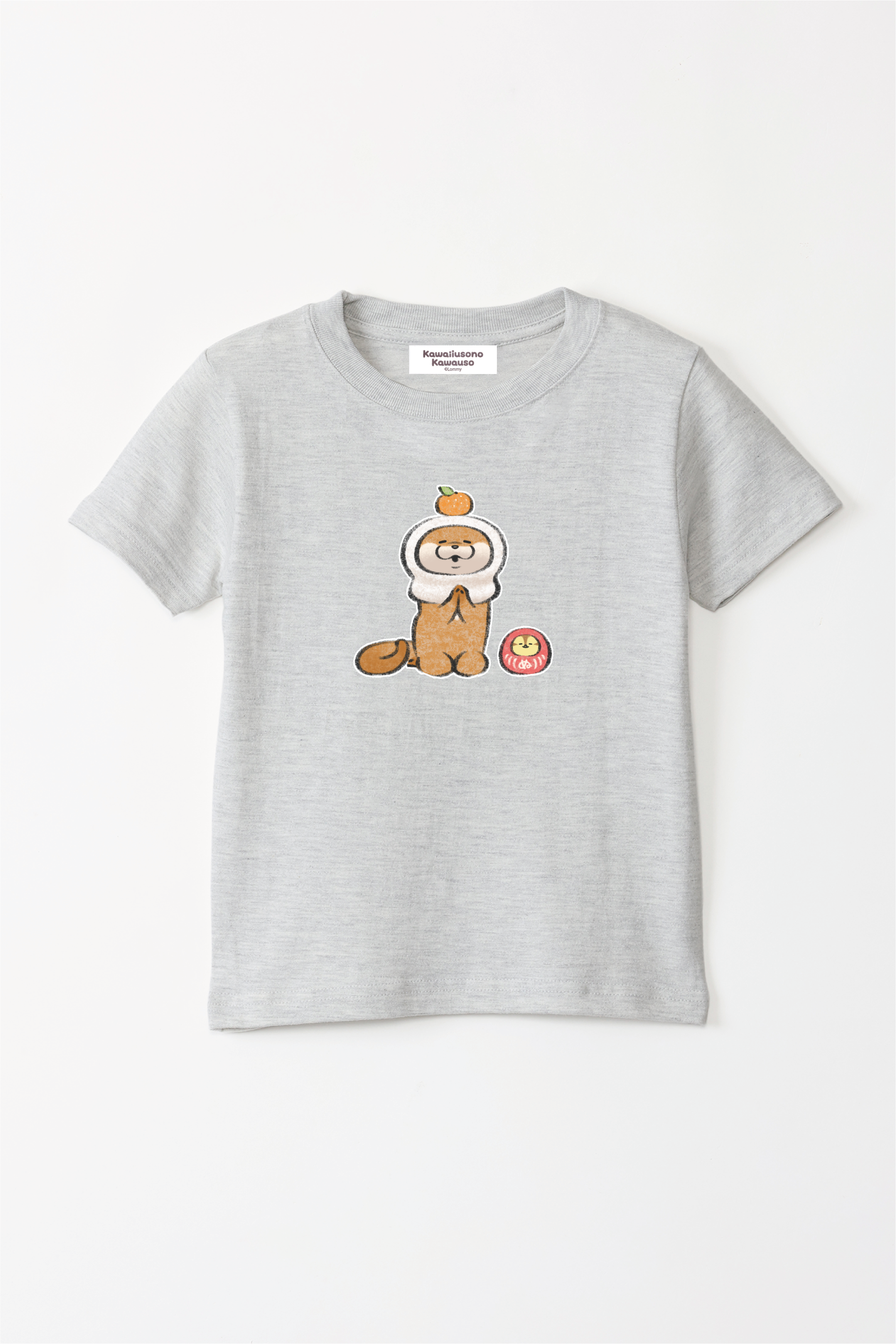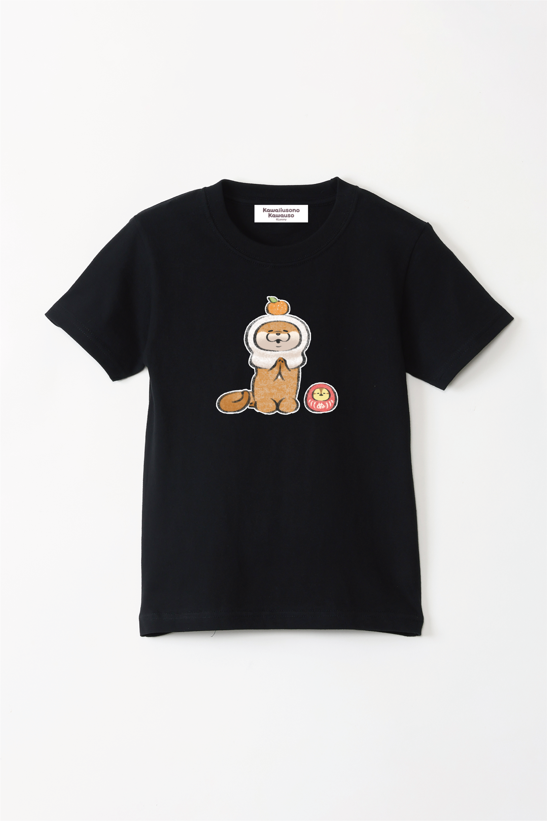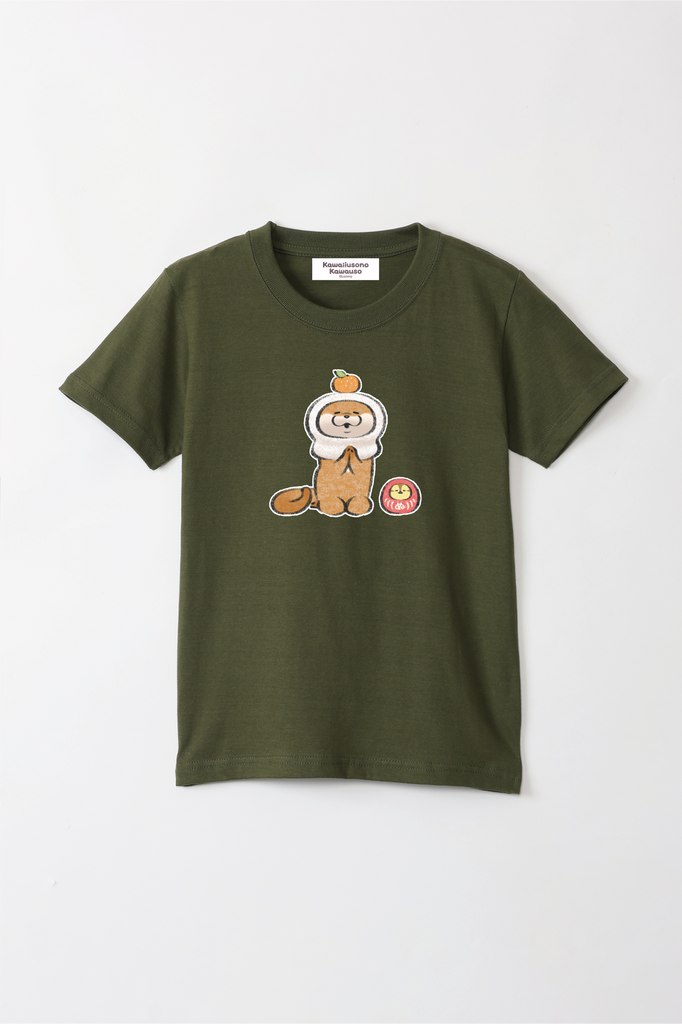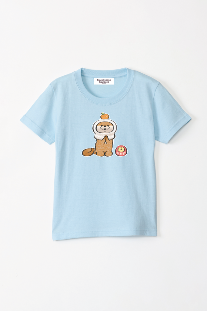 可愛い嘘のカワウソ 鏡餅だぬ キッズTシャツ