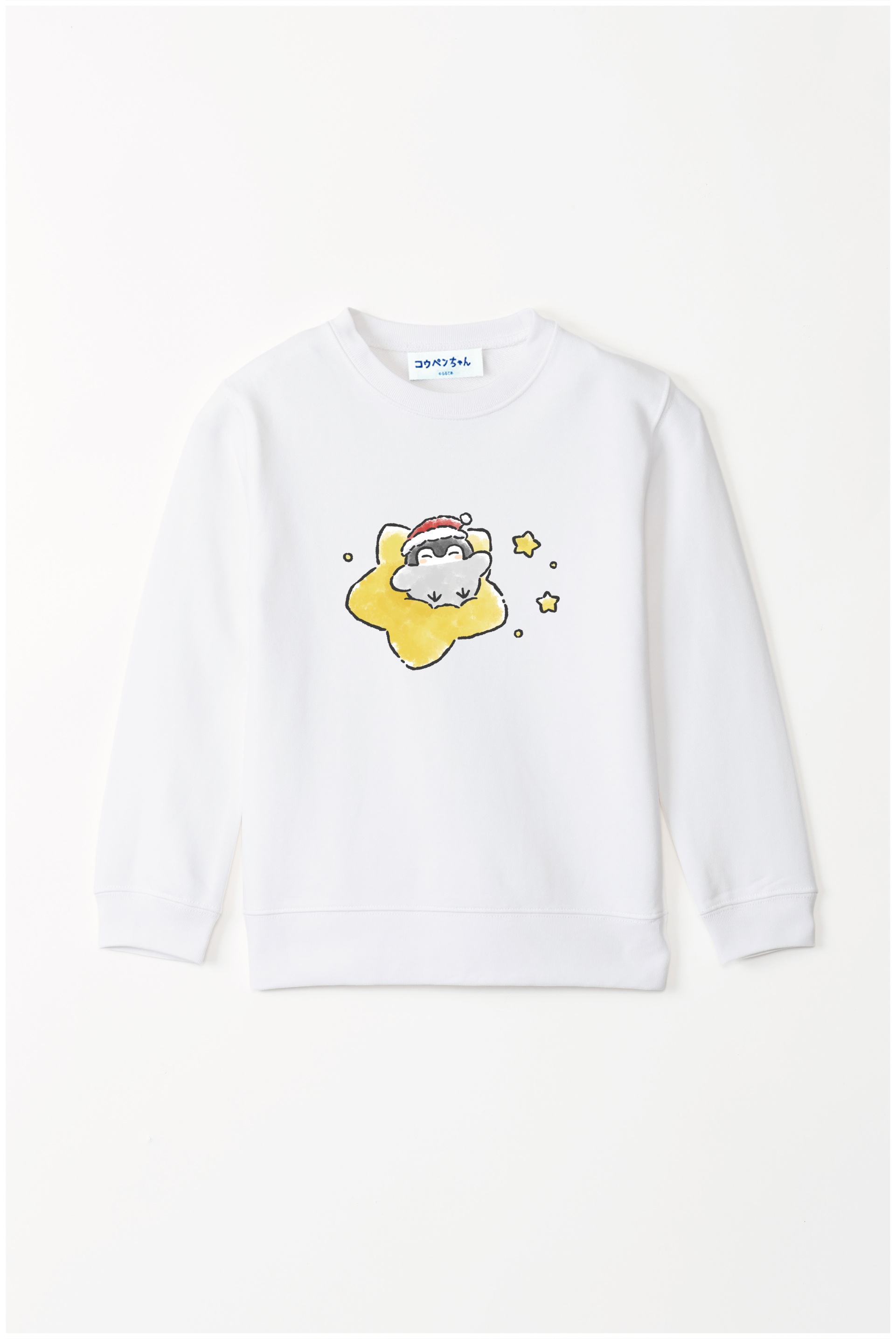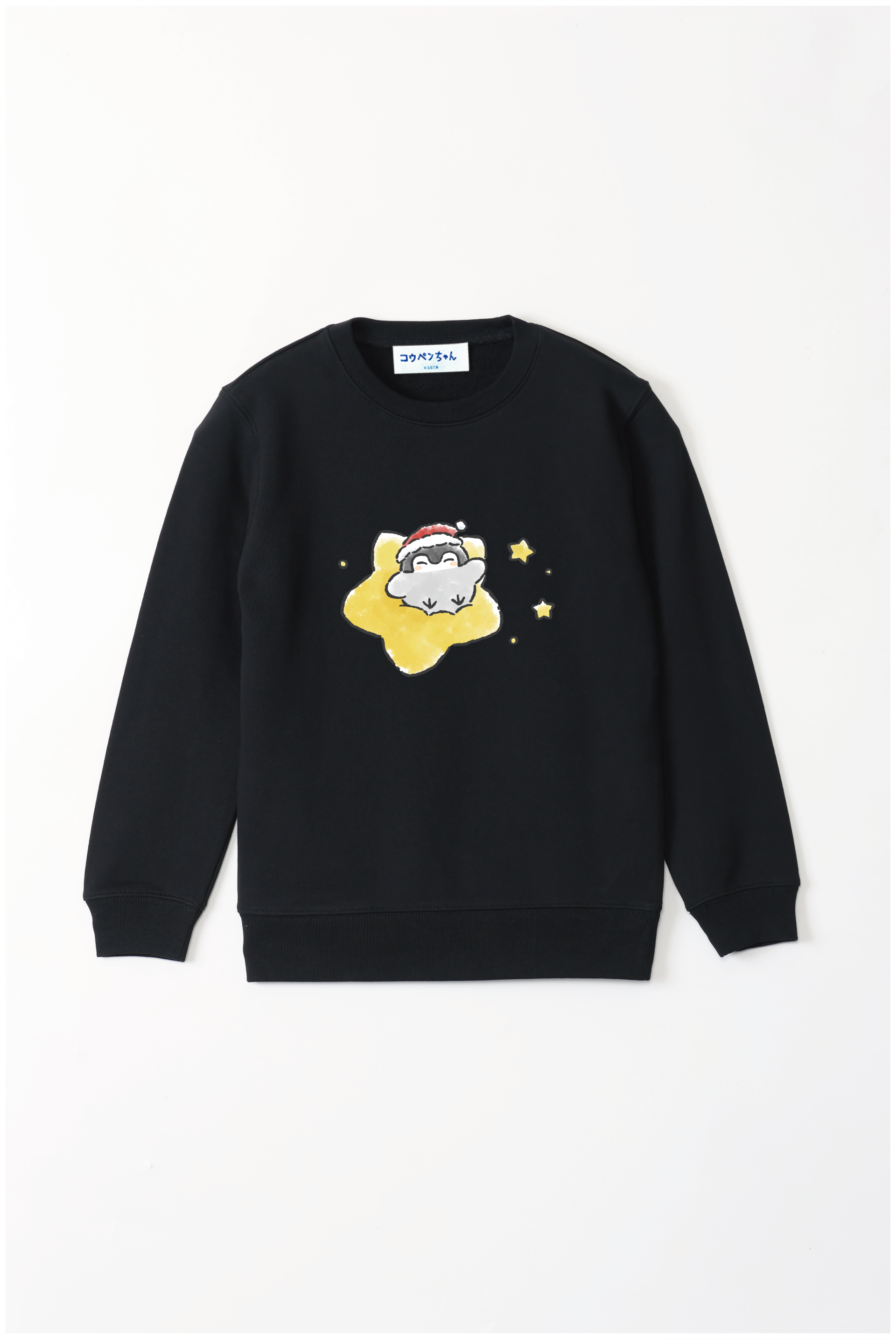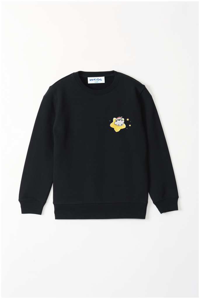 サンタさんの帽子をかぶったコウペンちゃんが、星に乗って輝く冬のデザイン♪